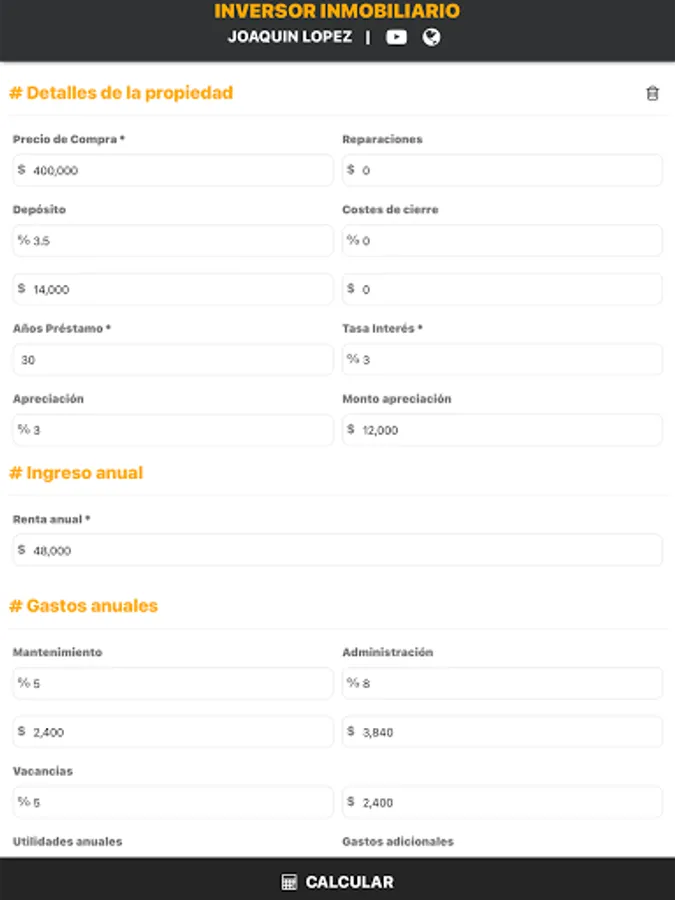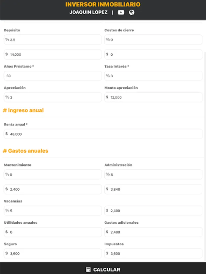 Probablemente uno de los mayores miedos por los que las personas no invierten en bienes raíces, es por el desconocimiento de cómo hacer los cálculos. Con la calculadora INVERSOR INMOBILIARIO puedes calcular los números para una inversión en bienes raíces desde tu teléfono en menos de 1 minuto y poder determinar el trato correcto.