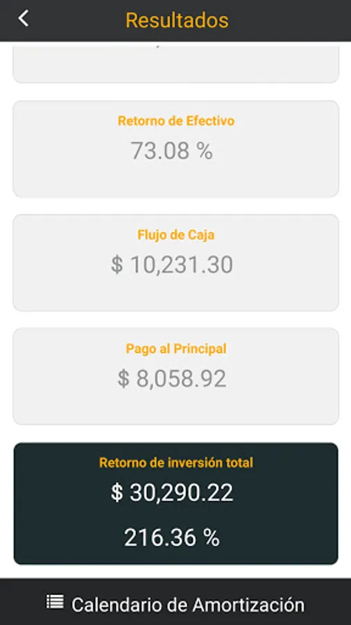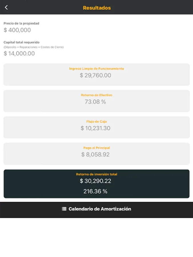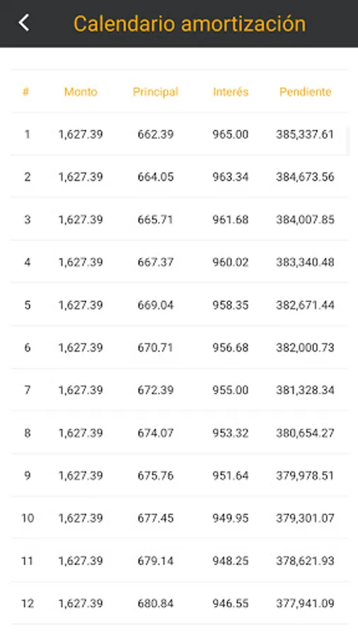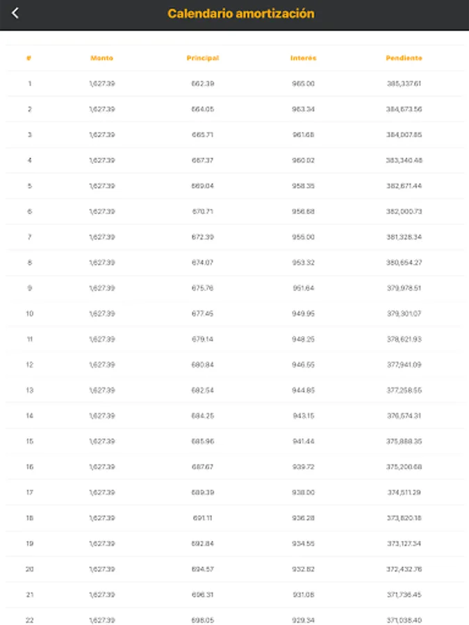 Al final de la aplicación vas a tener acceso al calendario de amortización, donde podrás ver el desglose mensual del pago de tu hipoteca durante la vida del préstamo.