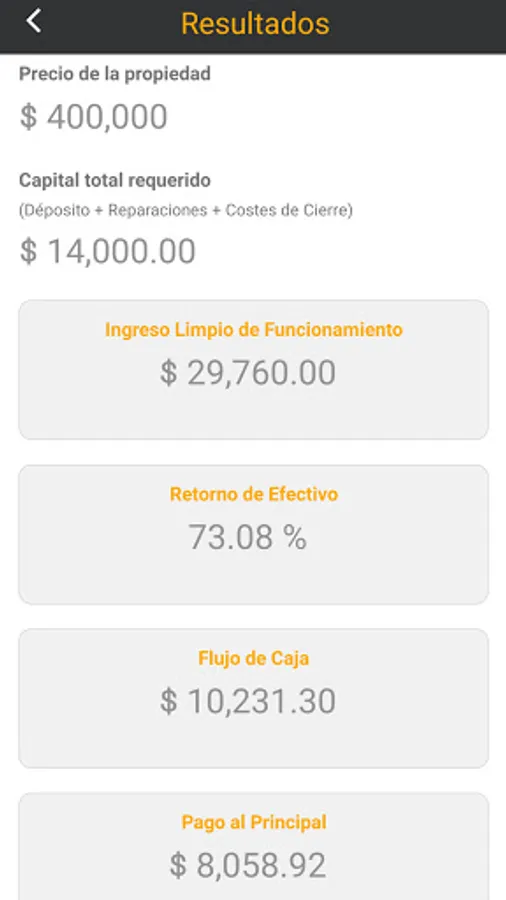 RETORNO DE INVERSIÓN TOTAL: En monto y en %, teniendo en cuenta el pago al principal y la apreciación de la propiedad. De esta manera tenemos una idea real del incremento que está realizando nuestra inversión.