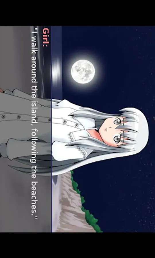 This game is an English-language visual novel, a way of story telling involving images, and text. It takes place the summer before you go away to college, and you're spending it visiting with your aunt and uncle on a small island in the Atlantic ocean. One night, while out taking pictures of the full moon, you meet a girl walking down the beach.