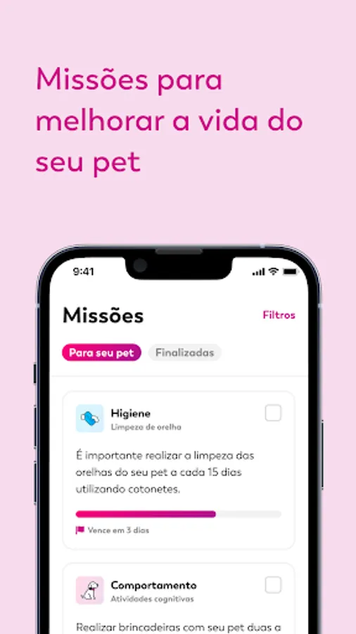 Tasks, on the other hand, allow the professionals involved in your pet's care to send you requests, exams or images, ensuring constant attention to your pet's well-being.