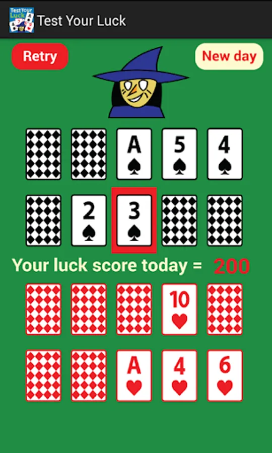 Test Your Luck simply measures your luck, just by letting you do a little card battle with the crafty witch.