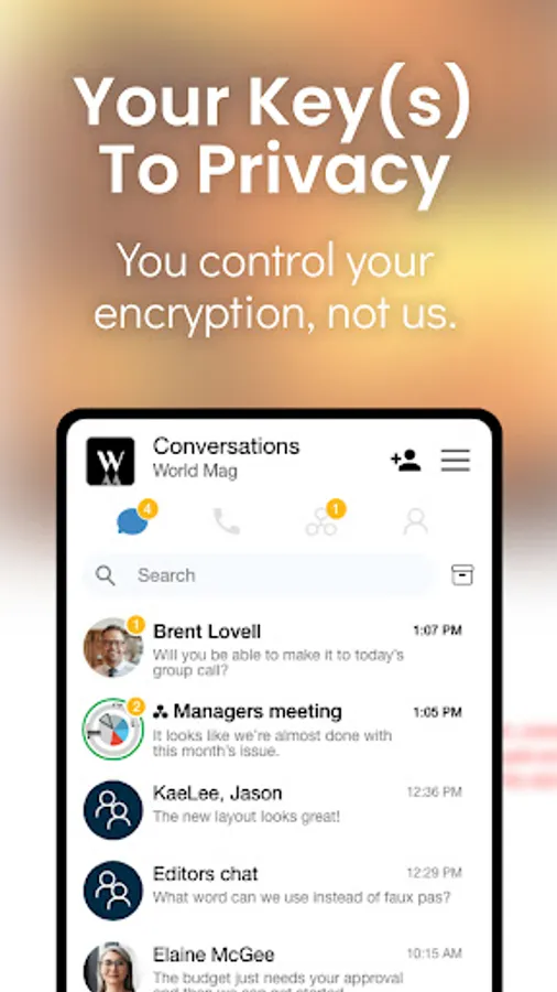 Other messengers announce your registration to everyone in your contact list. We never share your account with anyone other than those you invite to connect. Lochbox even lets you keep your work and personal contacts and conversations separate so you can use the same device without exposing one to the other.