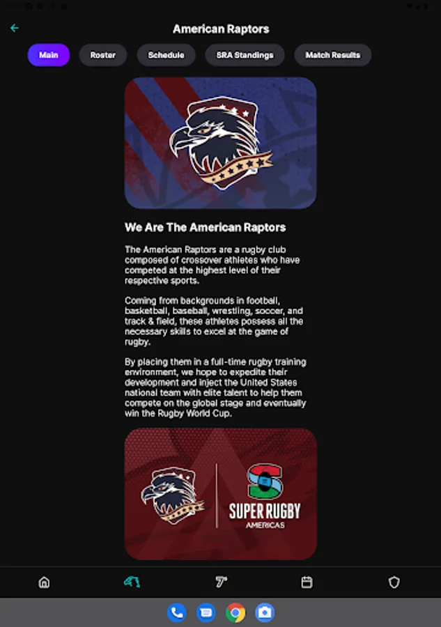Never miss a match with the official app of RugbyTown USA & The American Raptors. Watch the legendary RugbyTown 7s International Tournament and keep tabs on The American Raptors as they embark on their first year of Super Rugby Americas - an international tournament of 7 franchises from North and South America. Get stats. Get scores. Get standings. Get it all.