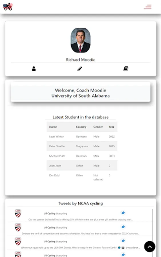 collegeCycling is a recruiting tool for college/university Cycling coaches in USA and college bound Cycling student athletes in the recruiting process. Students can create a profile on the site for free and US college Basketballcoaches will then have access to the student’s details. It could be academic as well as Cycling details such as statistics, results and videos. The student will be able to look up all colleges/ universities in NCAA, NAIA and NJCAA. Get information about their program, coaches and many other important information’s.