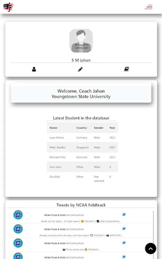 Inside the app you will also find a sophisticated calendar system, built on the app collegeBasketball. The athlete can plan his future Track&Field events and the coach will be able to see which events its favorite athlete is playing and with this information they can plan future recruiting trips.