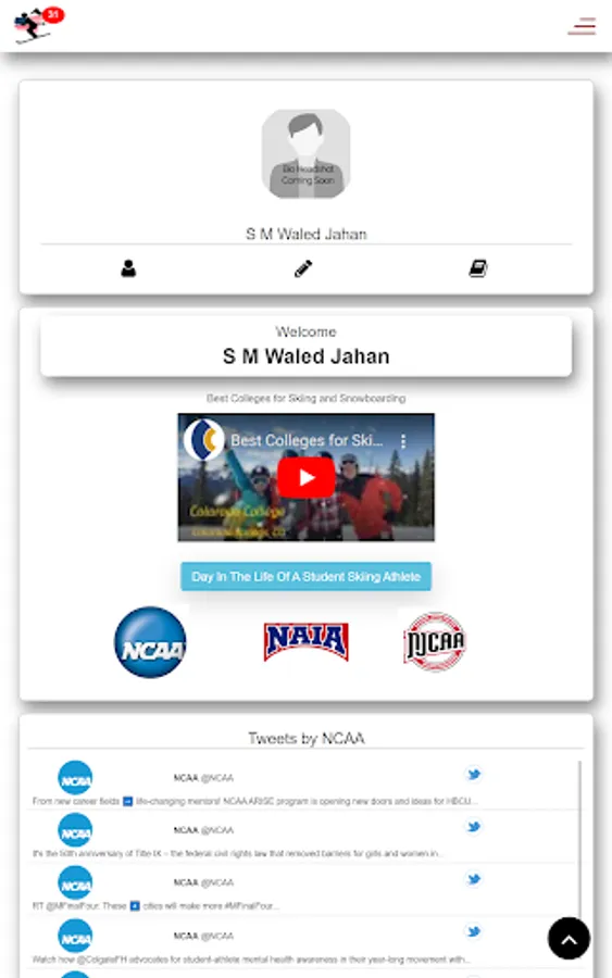 At the same time if a coach is adding a athlete as a preferred/favorite or is visiting the student’s profile on collegeSkiing the student will be notified by the system that the coach has been visiting the athlete or adding him or her to the favorite list. It is also possible for the coach and student to communicate inside the app.