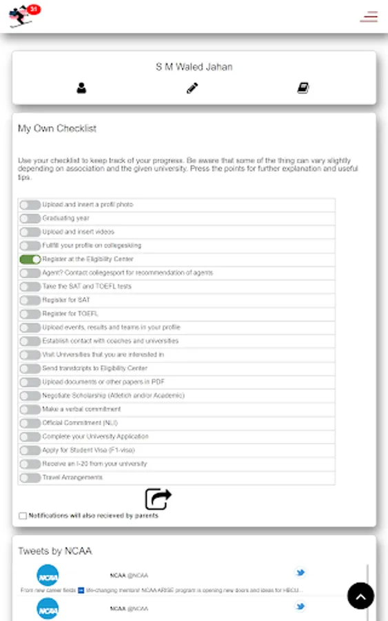 It is possible for the coach to setup criteria such as eg max hcp, lowest SAT score, lowest TOEFL score and rankings from the WAGR and EGR ranking for collegeSkiing sophisticated notification systems. If a student athlete inside those criteria is visiting the coach’s college or profile, the registered coach will be notified via the app. In this way the coach will be able to filter the perfect athlete for their program and do not need to travel the world. The athlete suited for their program will come to them.