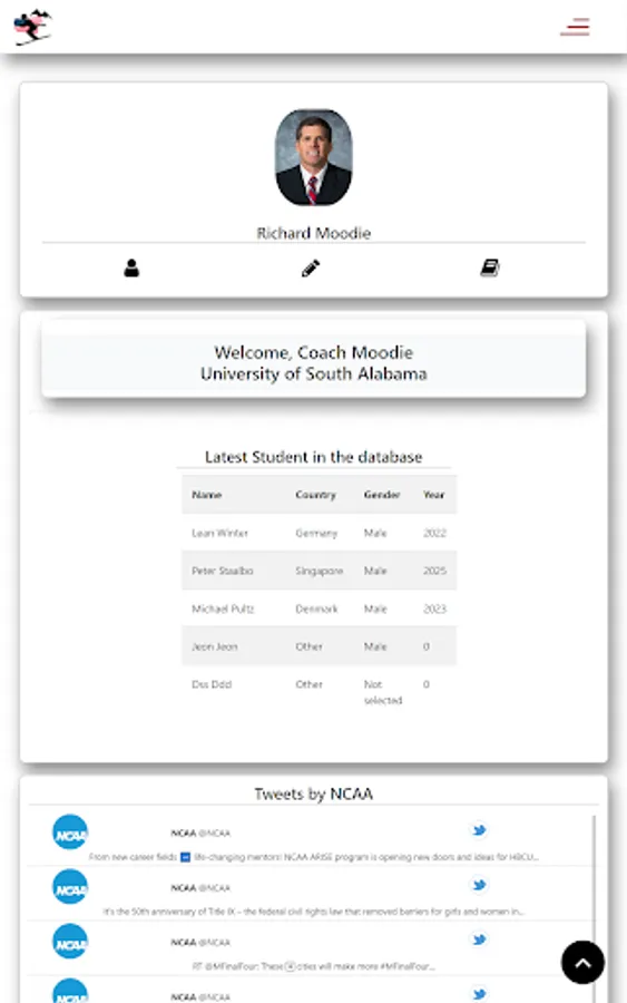 Inside the app you will also find a sophisticated calendar system, built on the app collegeBasketball. The athlete can plan his future Skiing events and the coach will be able to see which events its favorite athlete is playing and with this information they can plan future recruiting trips.
