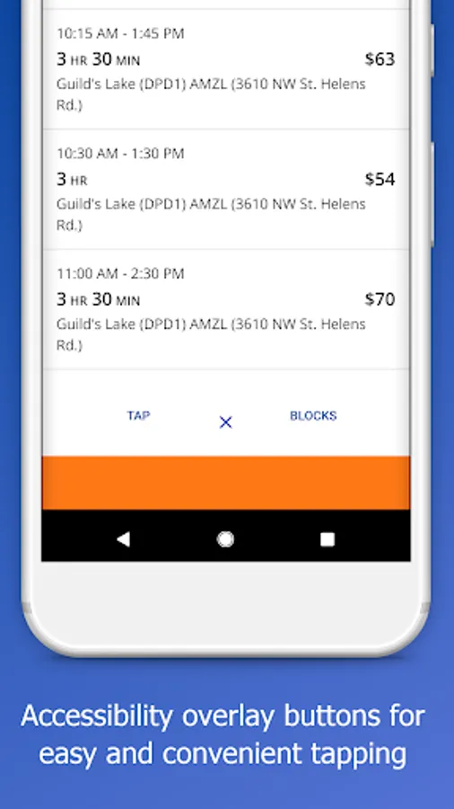 An Android accessibility service designed make the process of tapping for blocks within the Flex app easier and more intuitive. With the side-by-side accessibility buttons tapping for blocks becomes much more convenient and natural. No over extension of the hands or unnatural tapping required. Our accessibility button's convenient placement allows for the use of the thumbs to both refresh and grab blocks as they show up. As well as accepting them.