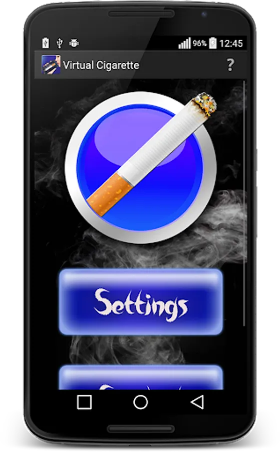 You can fool your friends and pretend that you smoke virtual cigarette. They will think that you have real cigar! This game contains very realistic smoke effects. The cigarette looks like a real one! It's getting smaller while you smoke it.