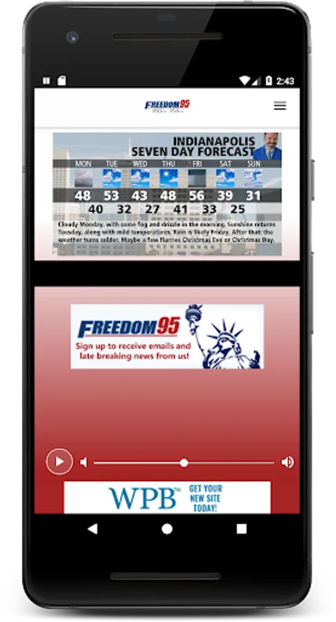 Freedom 95 - 95.9 FM and 950 AM - is a conservative talk radio in Central Indiana that hosts popular nationally-syndicated talk shows like Sean Hannity, Dave Ramsey, Laura Ingraham, Michael Savage, Mark Levin and more... Listen live with our FREE app anywhere from your mobile phone or tablet, hear podcasts, and get daily news feeds. The FREE app features advertising information and a signup form to receive station news and chances to win prizes. Support the radio station and the businesses that advertise on the station that bring you the hosts you love.
