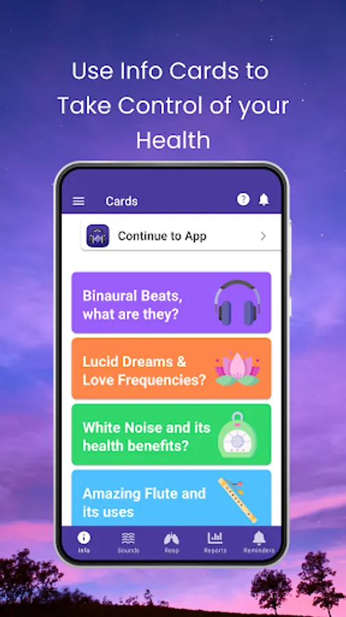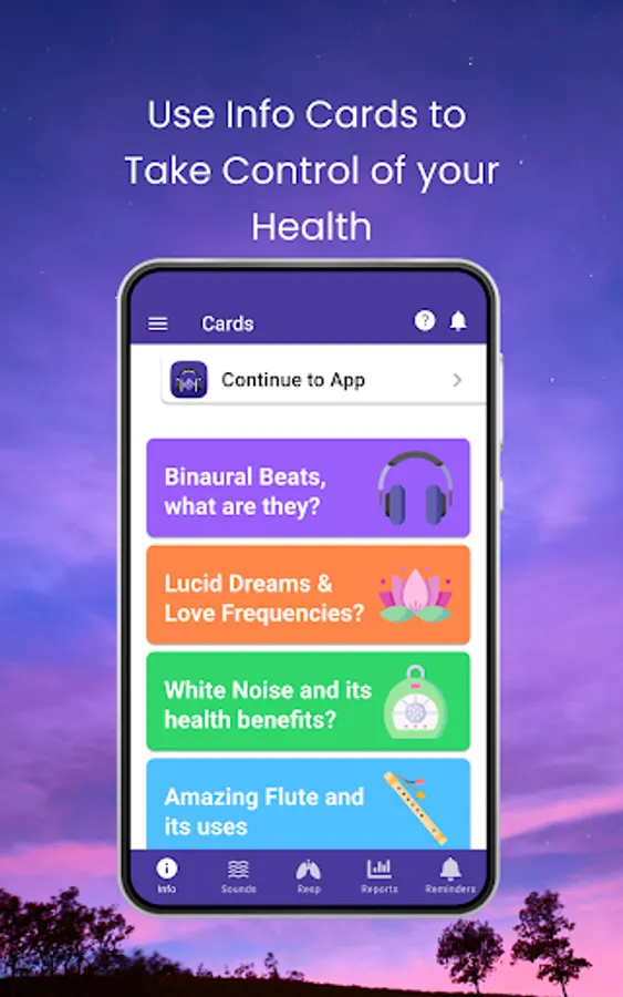 Now featuring an array of soothing additions designed to take your health journey to new heights. We're thrilled to introduce the harmonious blend of Calm, White Noise, Flute Sounds, and Respiration Exercises into our powerful App, elevating your experience and offering unparalleled tranquility.