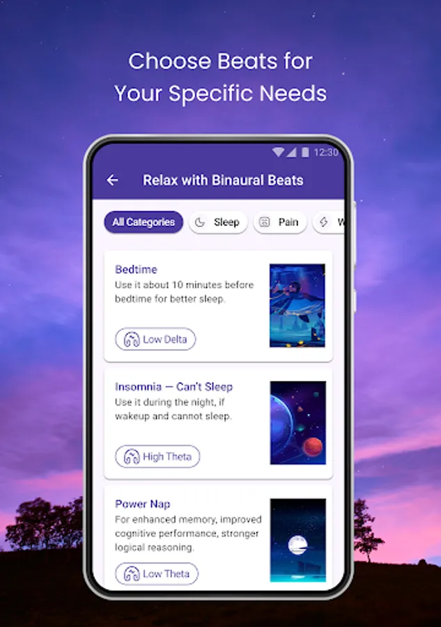 With our enhanced Binaural Beats App, you have the tools to create your personal sanctuary, anytime and anywhere. Immerse yourself in a harmonious blend of White Noise, Flute Sounds, and Respiration exercises, tailored to suit your unique preferences and needs. Embark on a transformative journey towards inner calm, clarity, and a renewed sense of purpose.