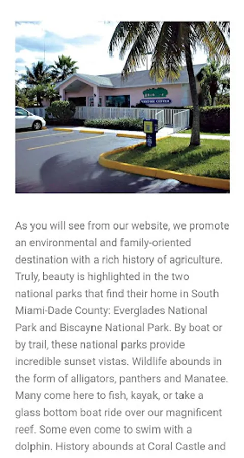 The Tropical Everglades Visitor Association (T.E.V.A.) is a non-for profit dedicated to providing information services to travelers in South Florida. Our visitor center located in Florida City on U.S. Highway # 1 has been open since 1988. Centrally located, our Visitor Center is placed at the crossroads of where the Florida Turnpike ends and turns into U.S. highway # 1 and at the junction of Krome Avenue (997) just to the south of Homestead. We are associated with the Homestead / Florida City Chamber of Commerce and; we are a founding partner with Visit Florida. Thirty volunteers help to provide directions to attractions, hotels and restaurants throughout the South Florida area. With our primary focus on South Miami-Dade County to include Homestead and Florida City we also provide information on the Florida Keys and Key West, as well as, attractions to our north to include the Seminole museum and swamp safari. This application will help you to best explore the place.