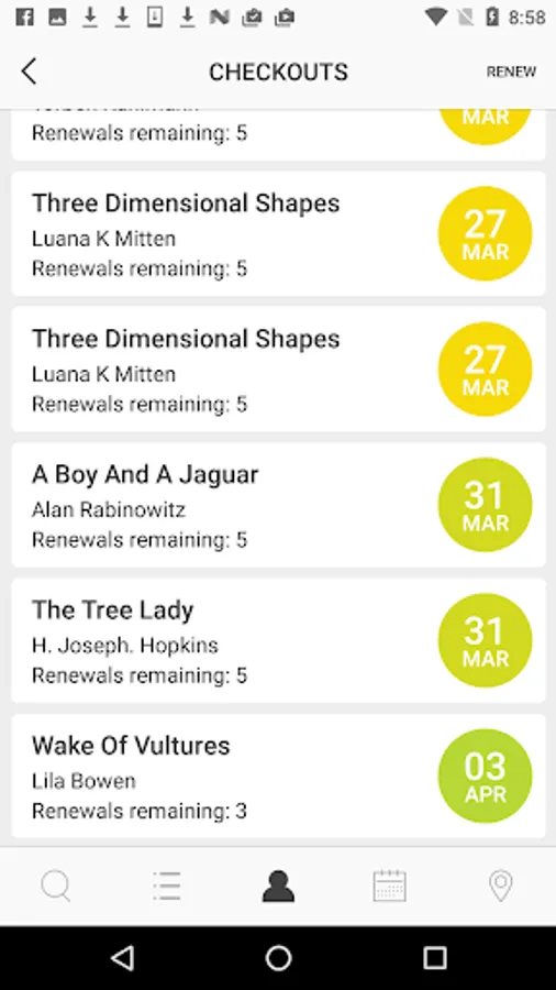 - Account: Renew your materials, place and cancel holds, and view your fines.