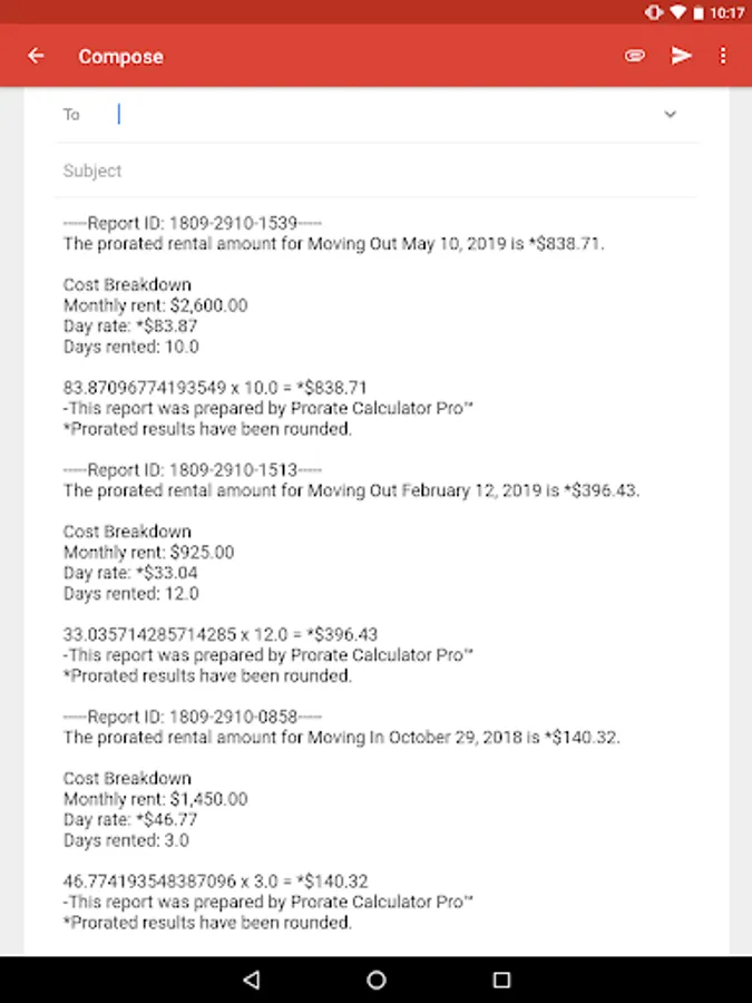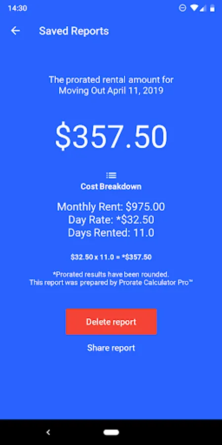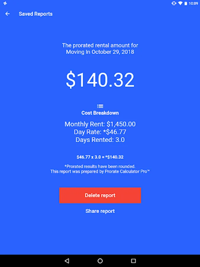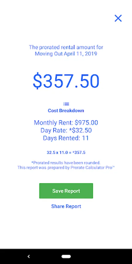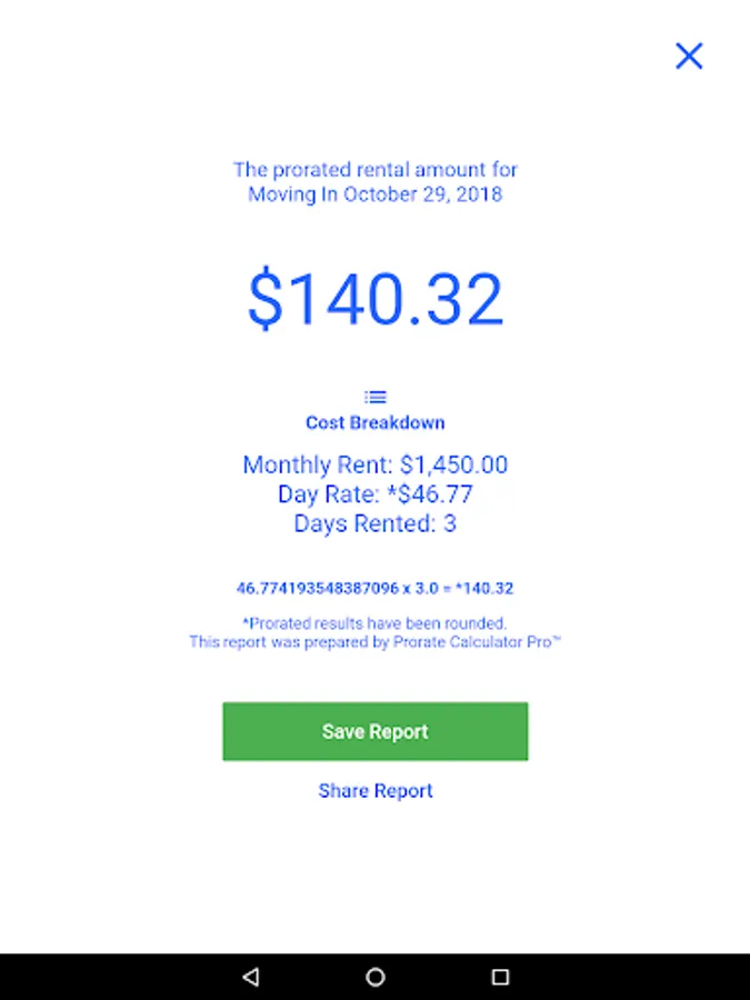 The capability to Save reports - making it easy to keep detailed records of past prorated rental calculations.