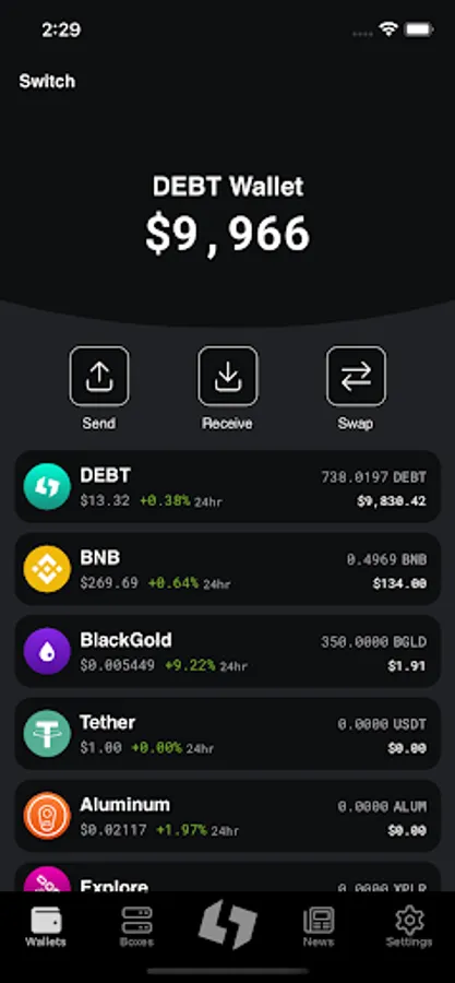 From the mobile app you can see your rewards, withdraw them, transfer your tokens on the wallet, manage your boxes, and keep up to date with the latest news!