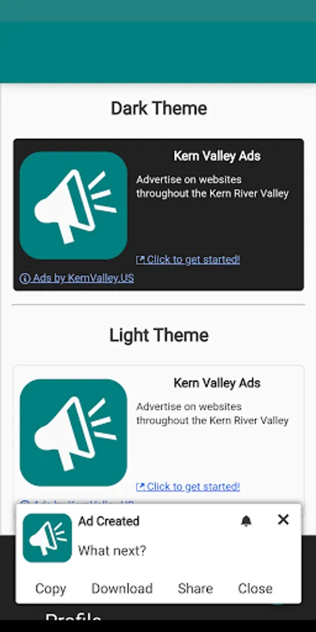 An app designed to make advertising easy for businesses in the Kern River Valley. Use the simple yet powerful ad builder to advertise on local websites such as the Whiskey Flat Days App and more!