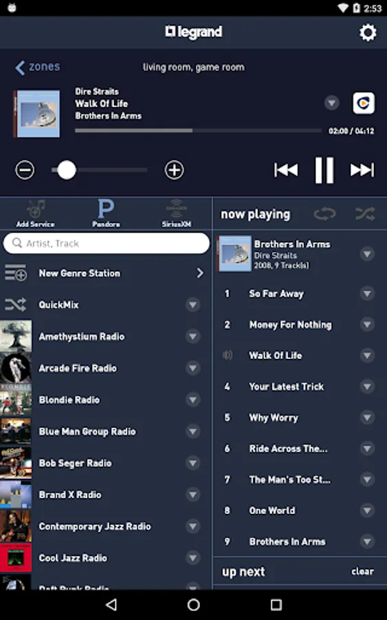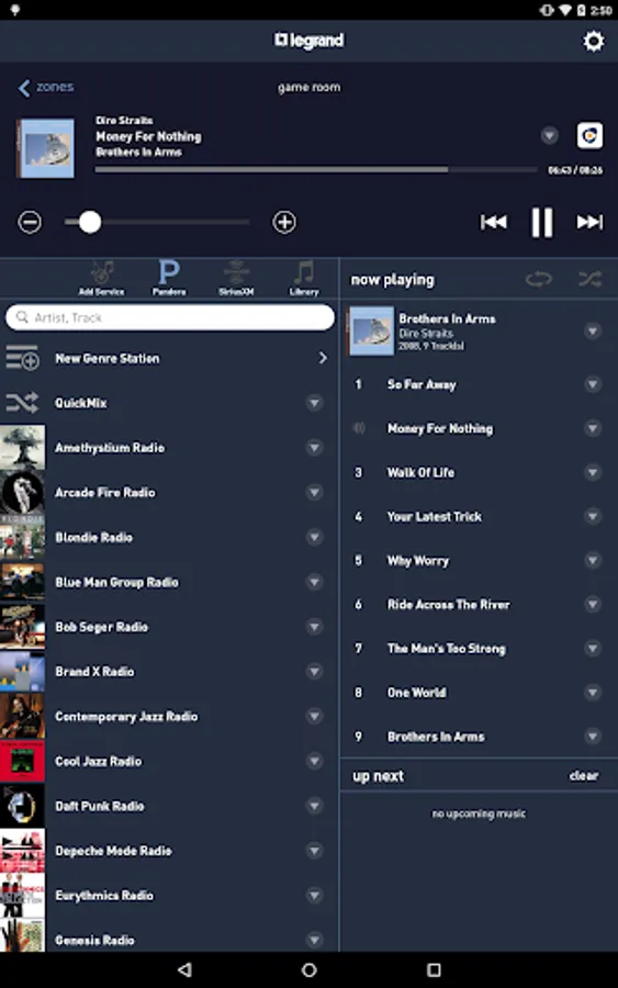 The On-Q Digital Audio app makes it easy to control the music you love throughout your entire home. Designed for intuitive and aesthetic wireless control of your entire On-Q Digital Audio System (sold separately), the app puts the expansive variety of Internet Radio, plus your personal music library, right in the palm of your hand. Play any music selection from your iTunes or Windows libraries, or even access audio from favorite streaming services. Enjoy the listening freedom.