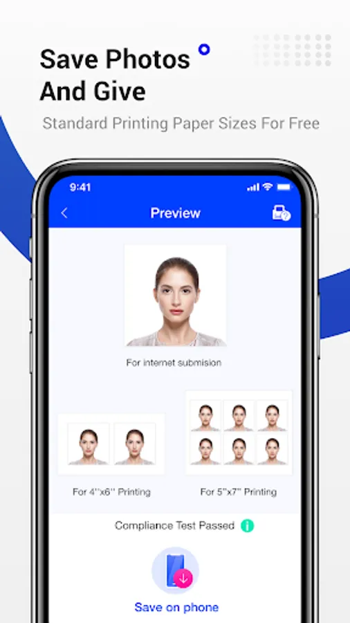 This AI passport photo app, you can create, format, save or print multiple passport photos in seconds any time, any places.