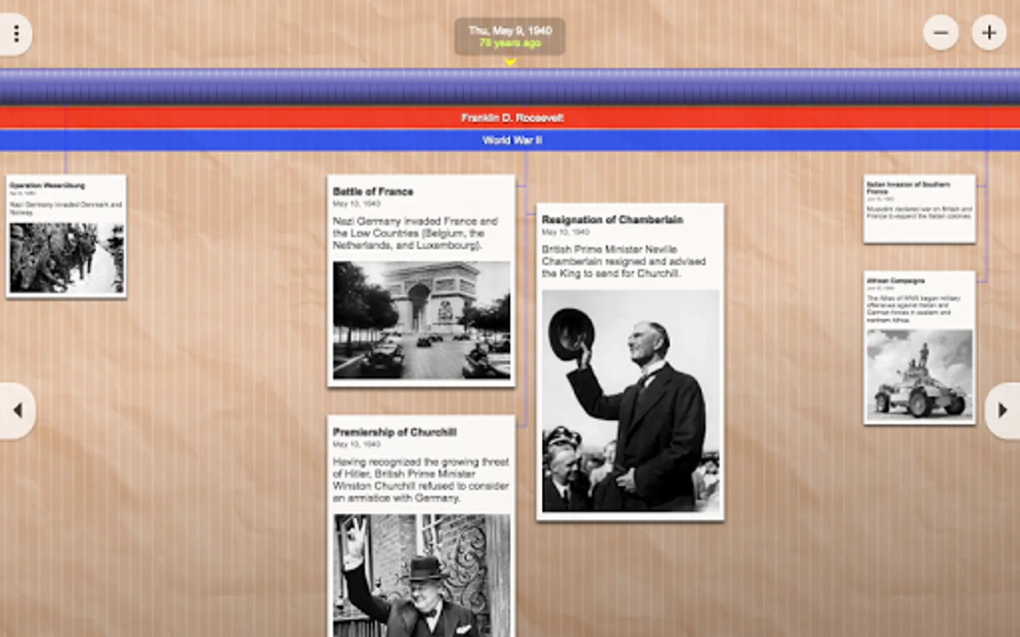 • Events are displayed in a large context, revealing and clarifying important historical connections.
