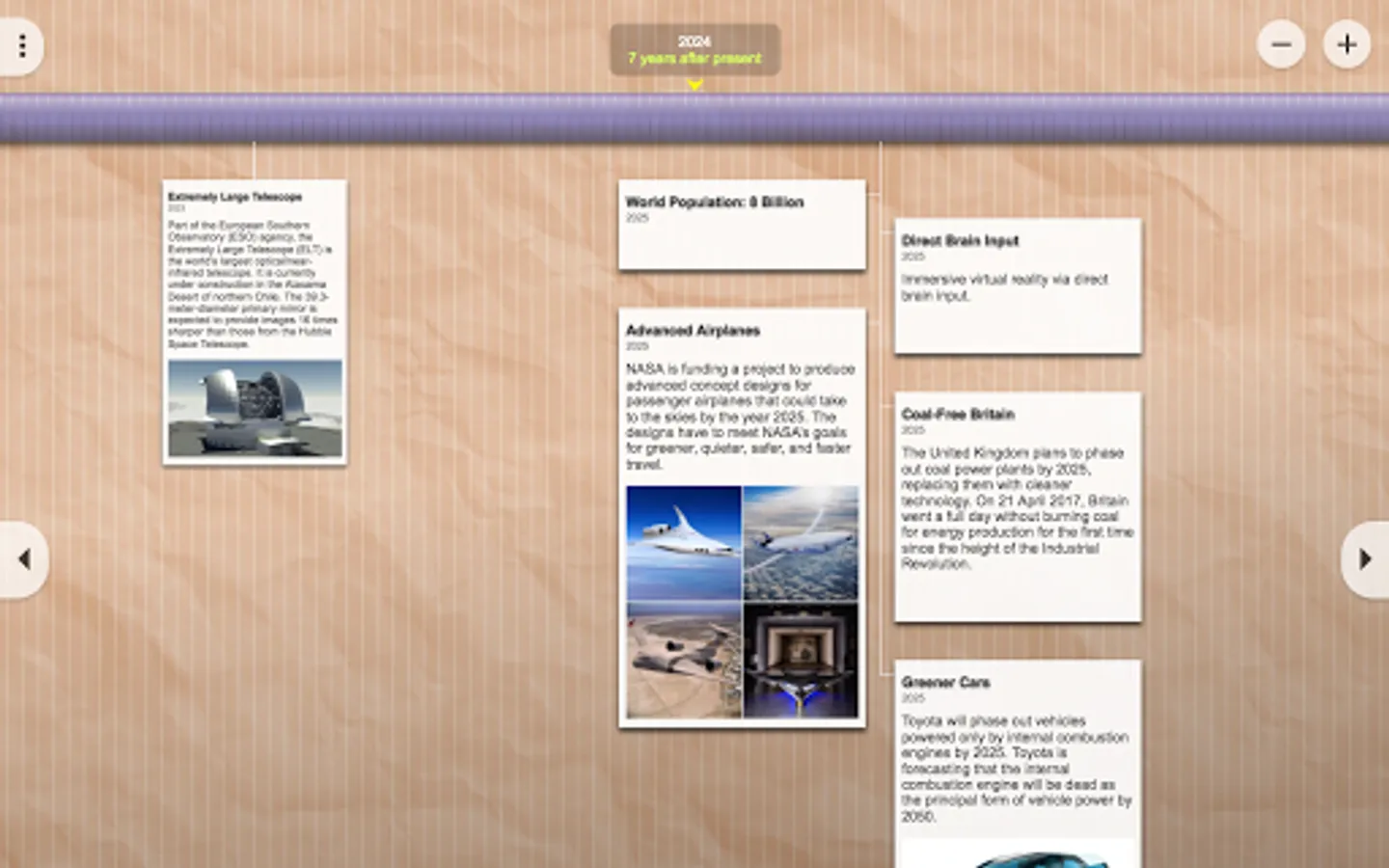 • Extensive and wide-ranging events, from the Big Bang, to historical events and future projections.