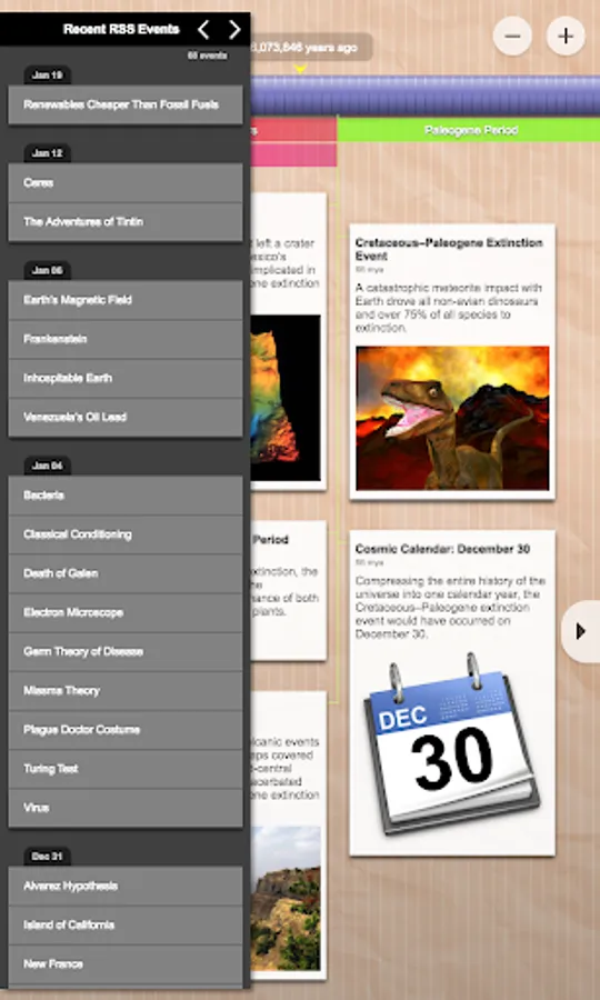 • Timeline Eons offers a comprehensive view of both the natural and human history.