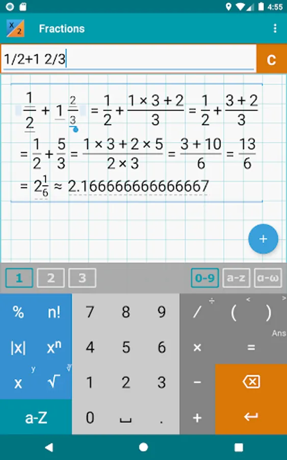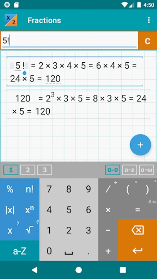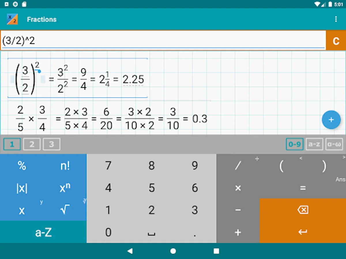 * Arithmetic operations (+,-,*,/,÷), hold / to enter ÷