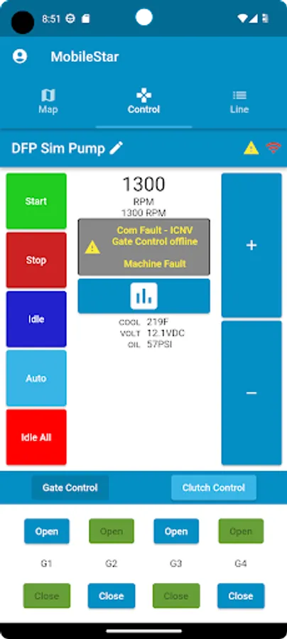 Control and view you Dakota Fluid Power MobileStar Pump Panel remotely. You can add your pumps to a line that you can rearrange to meet your needs. You can quickly switch between which ones you are controlling along with seeing them on a map. The same web experience brought to a mobile application