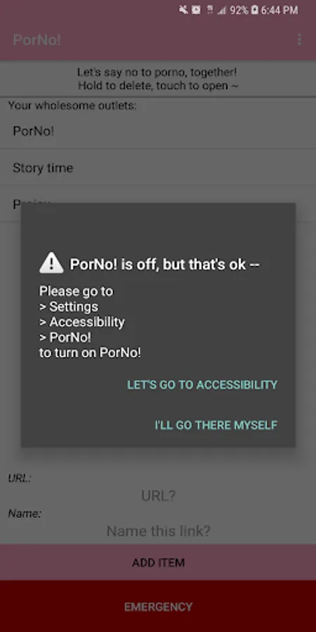 * PorNo! MUST BE ENABLED IN SETTINGS > ACCESSIBILITY > SERVICE