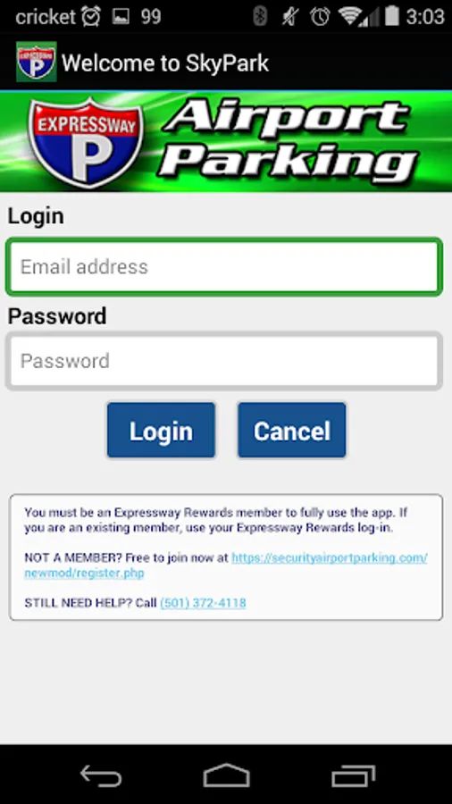 Customer portal for access to Expressway Airport Parking located at Clinton National Airport in Little Rock, AR, providing: