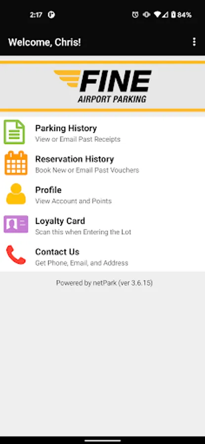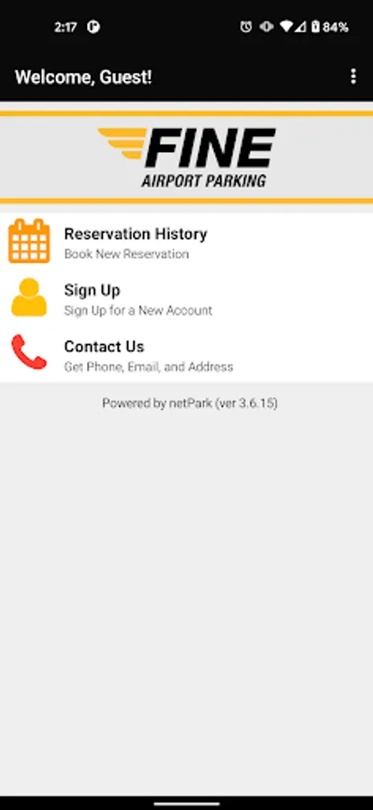 Customer portal for access to Fine Airport Parking located at Houston International Airport in Houston, TX, providing:
