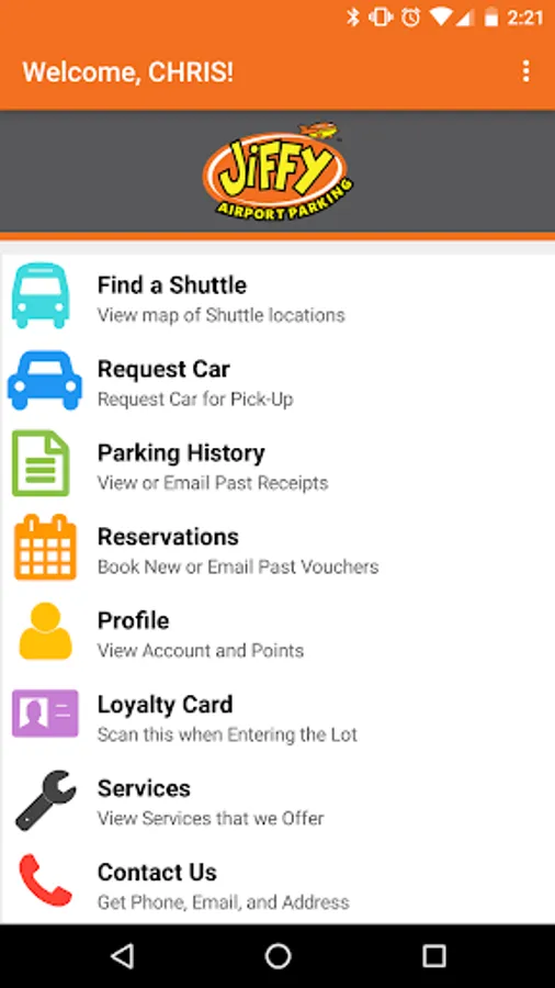 Customer portal for access to Jiffy Airport Parking located at Newark Liberty International Airport in Newark, NJ, providing: