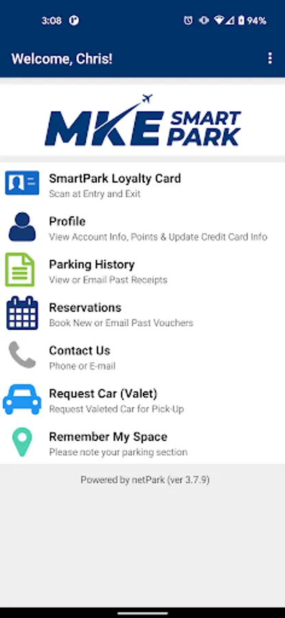 Customer portal for access to MKE SmartPark located at Mitchell International Airport in Milwaukee, WI, providing: