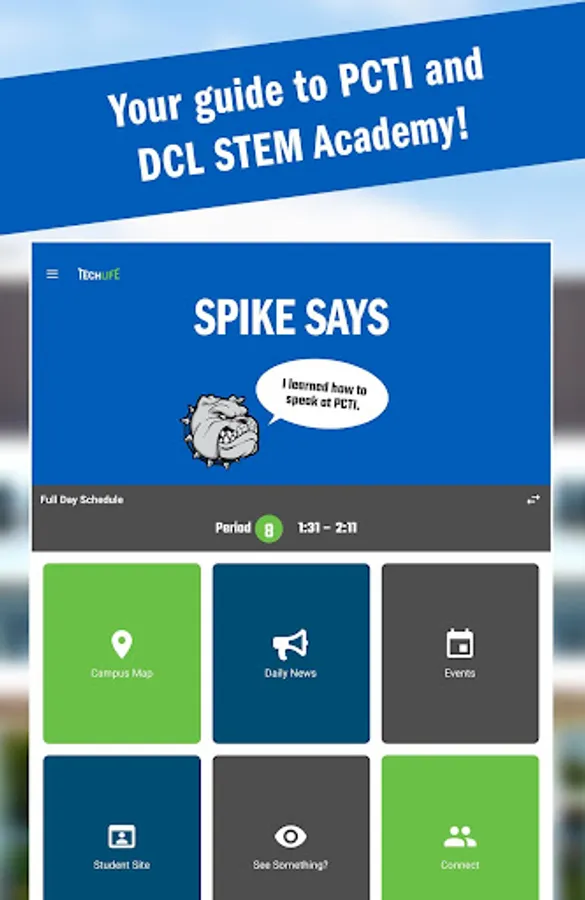 Navigate PCTVS's 55+ acre campus with the TechLife map and turn-by-turn offline walking directions! Stay connected to campus life with the latest news and upcoming events! TechLife is the official school companion app for bulldogs and visitors alike.