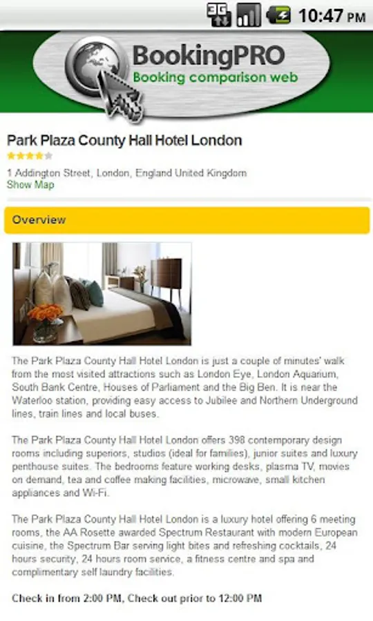✔ Hotel features, photographs, descriptions etc to find the best hotel.