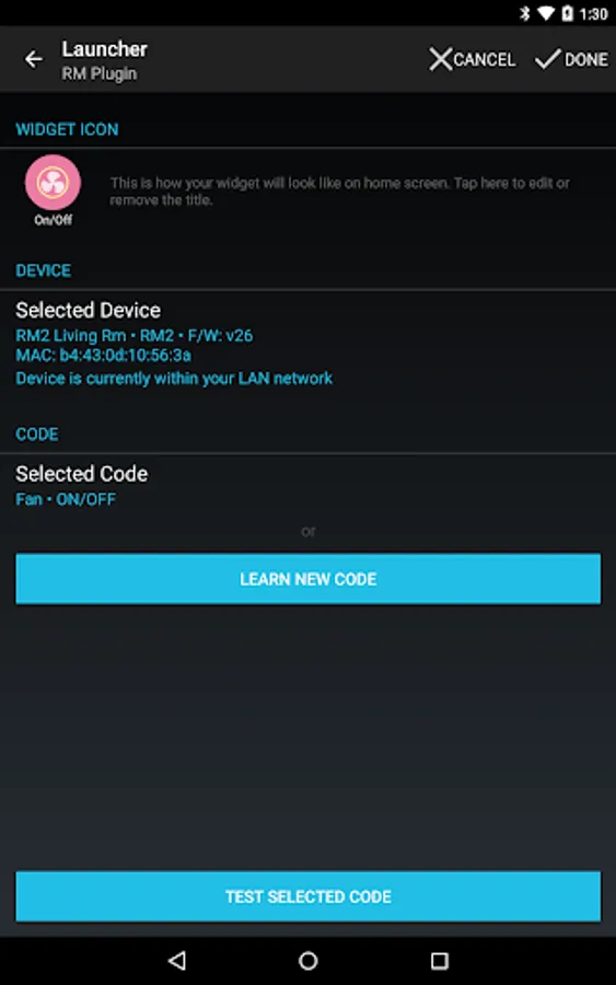 This let you add a widget/button on your home screen to directly control Broadlink RM at a few simple clicks.