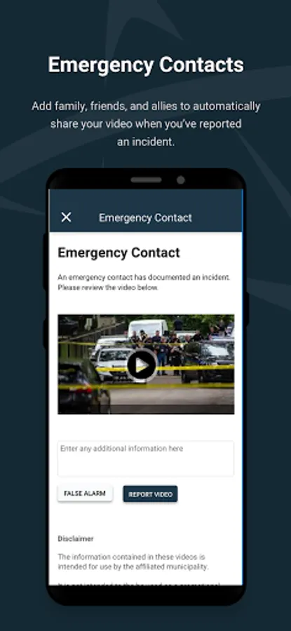 Add up to three Emergency Contacts to get alerts and access to your video feed any time you submit with Bystander.