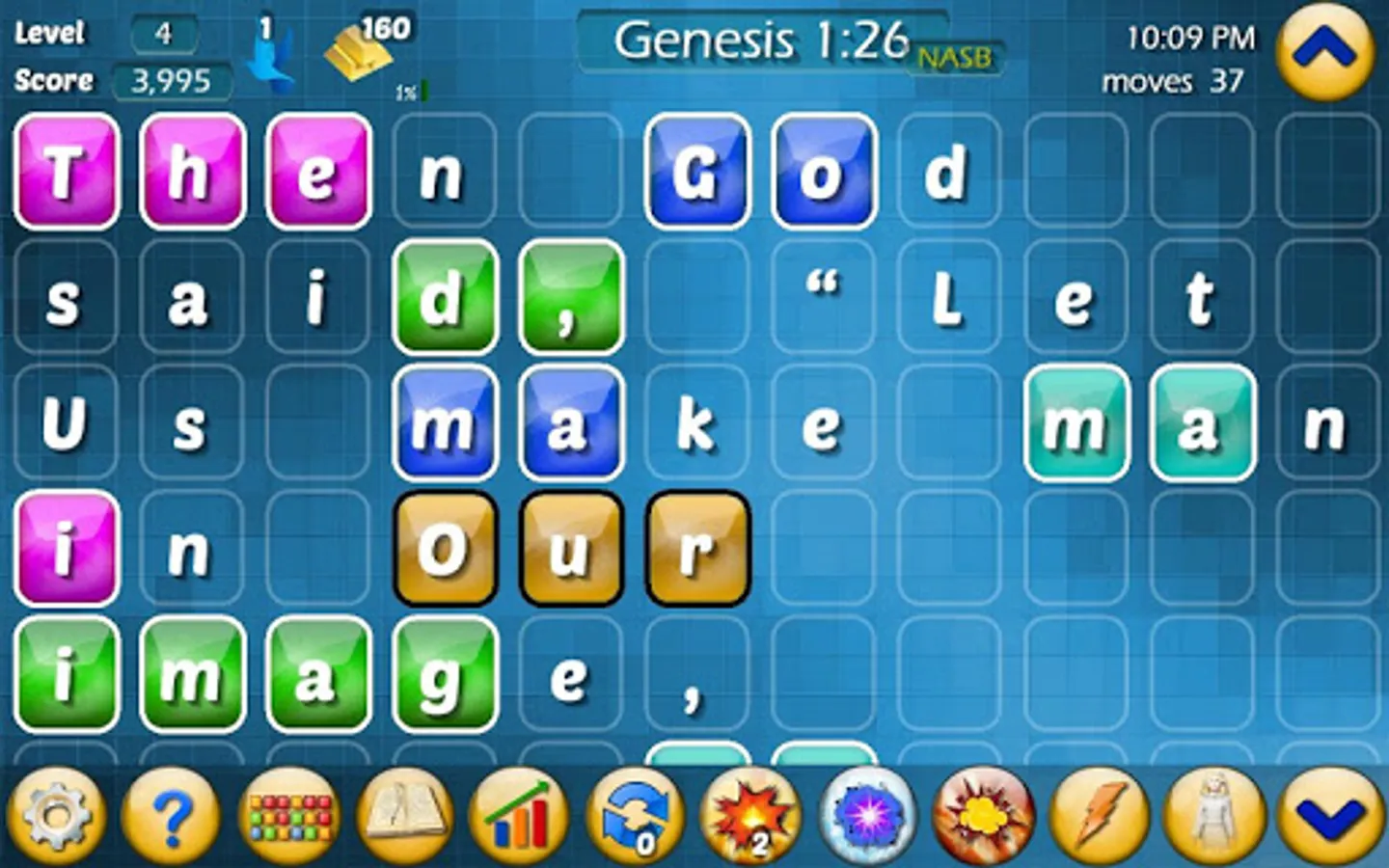 Download Play The Bible for free and enjoy this unique, patent-pending word matching game and learn Bible verses while you have fun playing through!