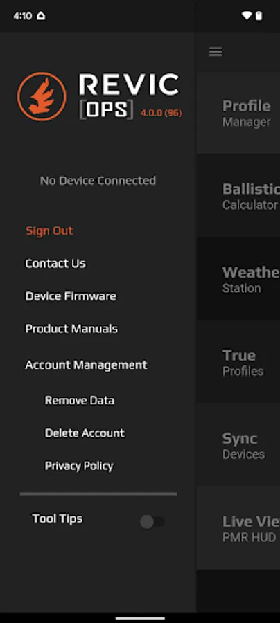 The Revic Ops App works as both a powerful stand alone ballistic calculator and also for managing Revic devices such as rangefinders and smart rifle scopes by creating, storing and loading profiles directly from the Revic Ops app via Bluetooth. Profiles include caliber, barrel twist, sight height, muzzle velocity and more. Two-way bluetooth communication allows Revic devices to provide real-time information like station pressure, temperature and more back to the Revic Ops app ballistic calculator.