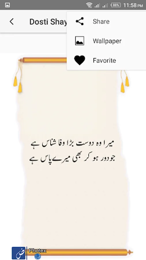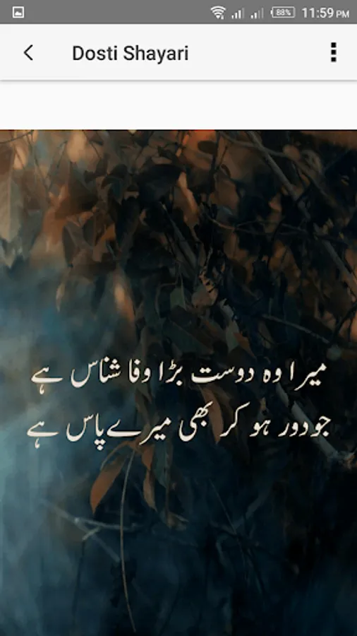 Dosti Shayari is solely dedicated to the true friends of all times. As in the one's life journey, a person has many relatives, colleagues, batch-mates, team-mates, etc, but true friends have their own special place where they belong. Dosti Shayari app express those best friendly feelings for our special friend of all times which clearly reflects the true friendship and expression in terms of words that are rarely said to any friends which they actually deserves the most.