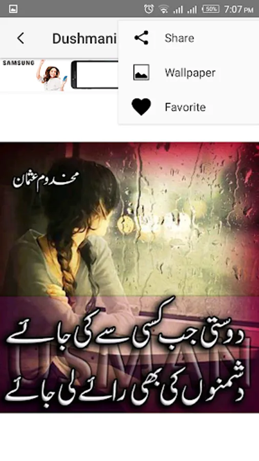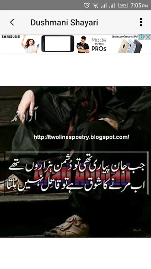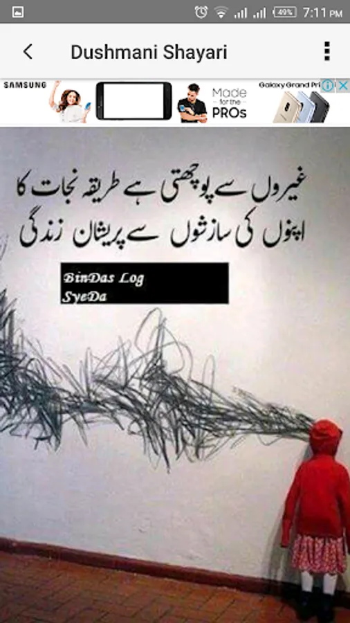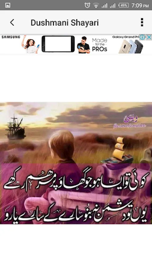Dushmani Shayari meant to give punches and words to the most complaining and querulous expression to the people who got different and variant desire for others different than Love, Romance or Friendship. This app is full of taunting, hatred and complaining expression that may target long term enemies, forbidden love and casually teasing friends.