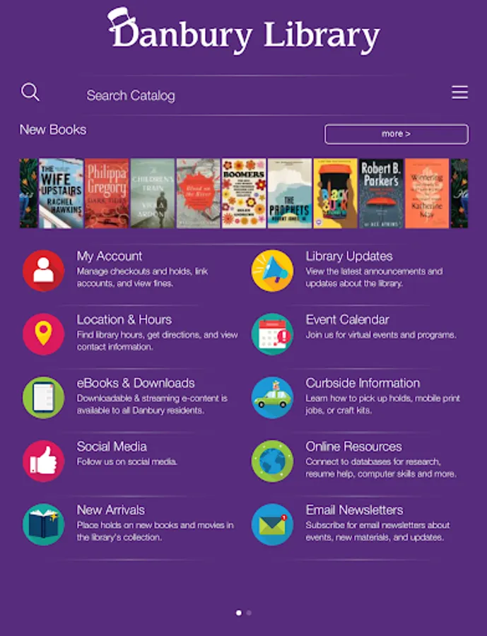 Access the Danbury Library from your Android phone or tablet. Manage your account, search the catalog, renew or reserve books, download e-content, browse new materials, see events and programs, and more!