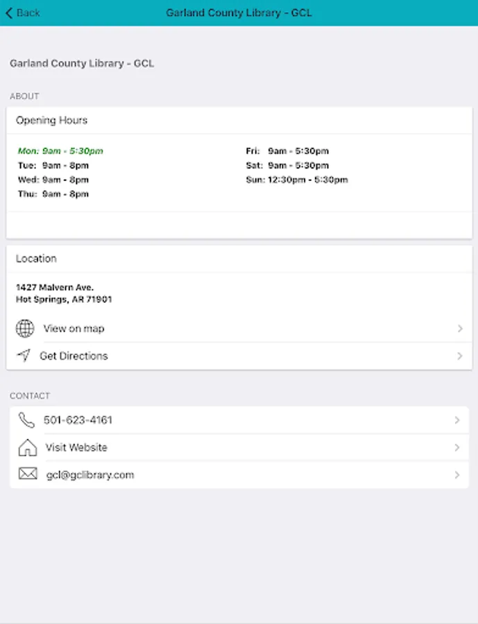Access the Garland County Library from your Android smartphone or tablet. Manage your account, search the catalogue, renew checkouts and place holds.