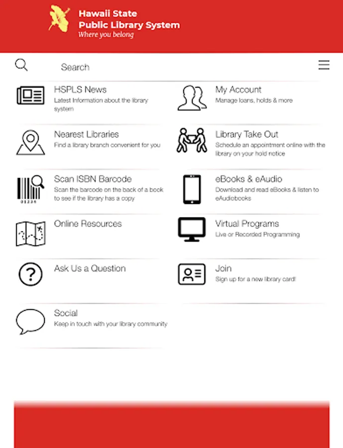 Access the Hawaii State Public Library System from your Android phone or tablet. Manage your account, search the catalogue, renew, reserve and borrow library items.