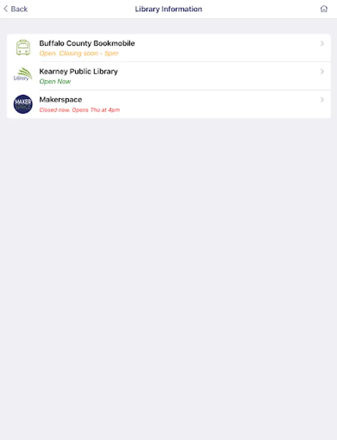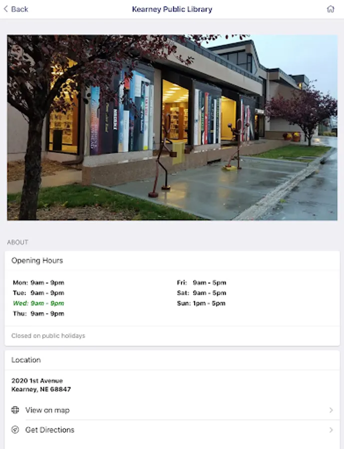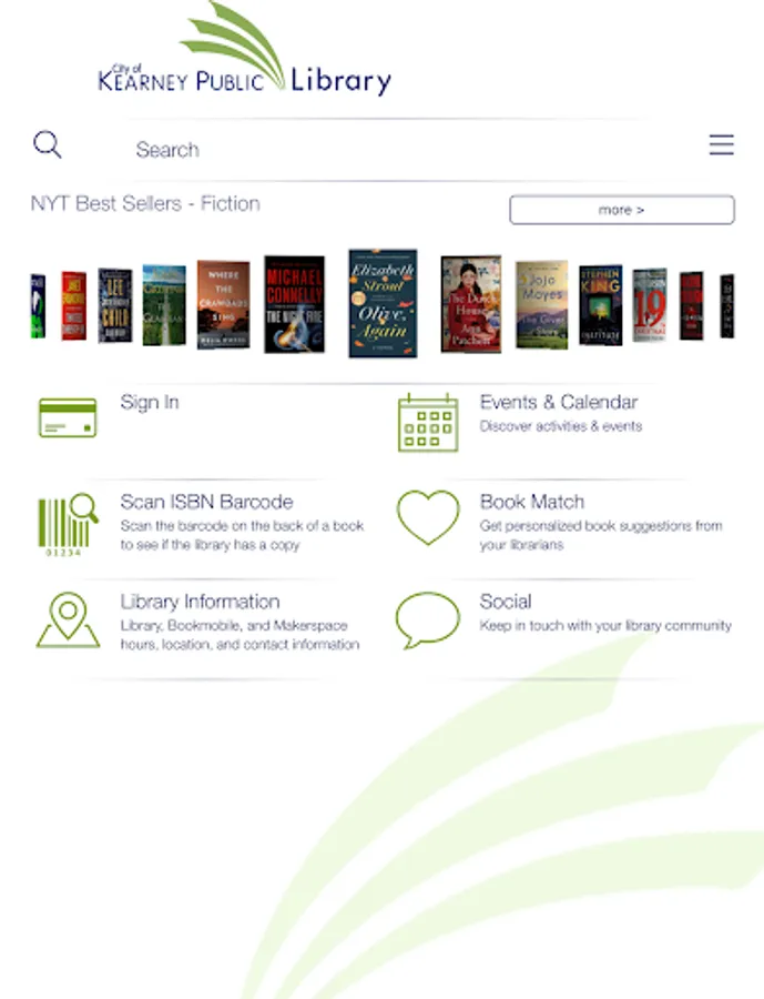 Access the Kearney Public Library from your Android phone or tablet. Manage your account, search the catalog, renew and reserve books, and more. Stay up to date with all the upcoming events, programs, and classes. Stay connected wherever you go!