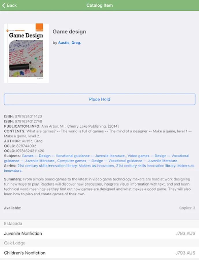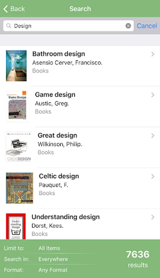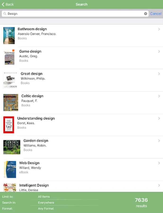 • Search by barcode: Use your device’s camera to scan the barcode on a book, CD, DVD, or other item at a friend’s house or bookstore and search for available copies at the library.