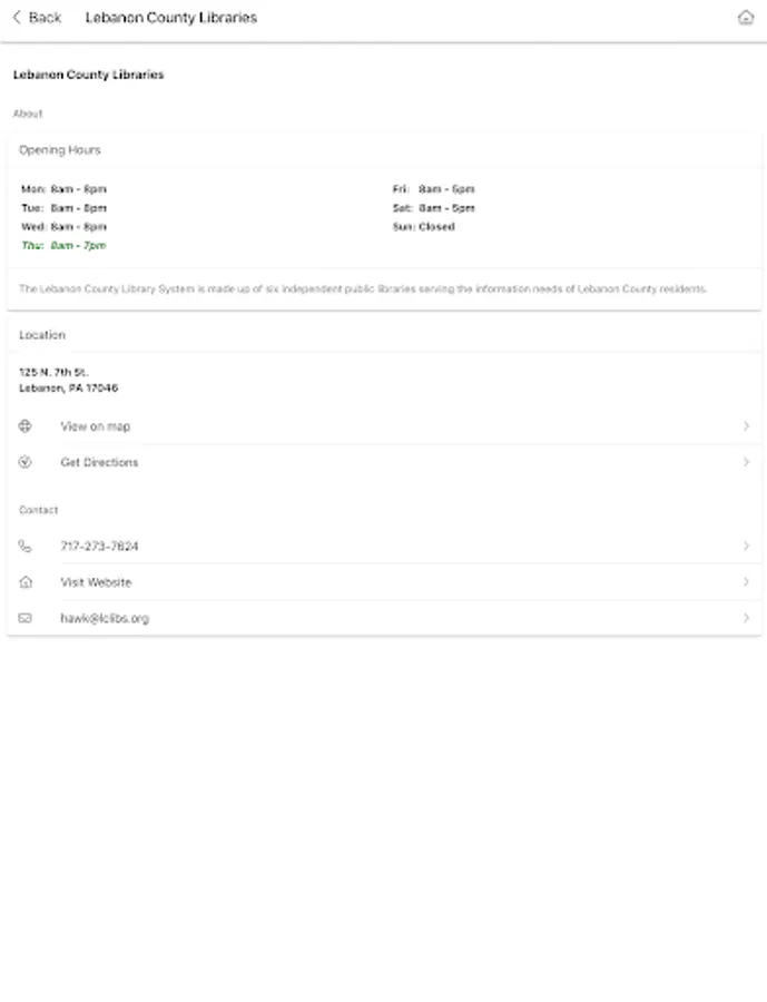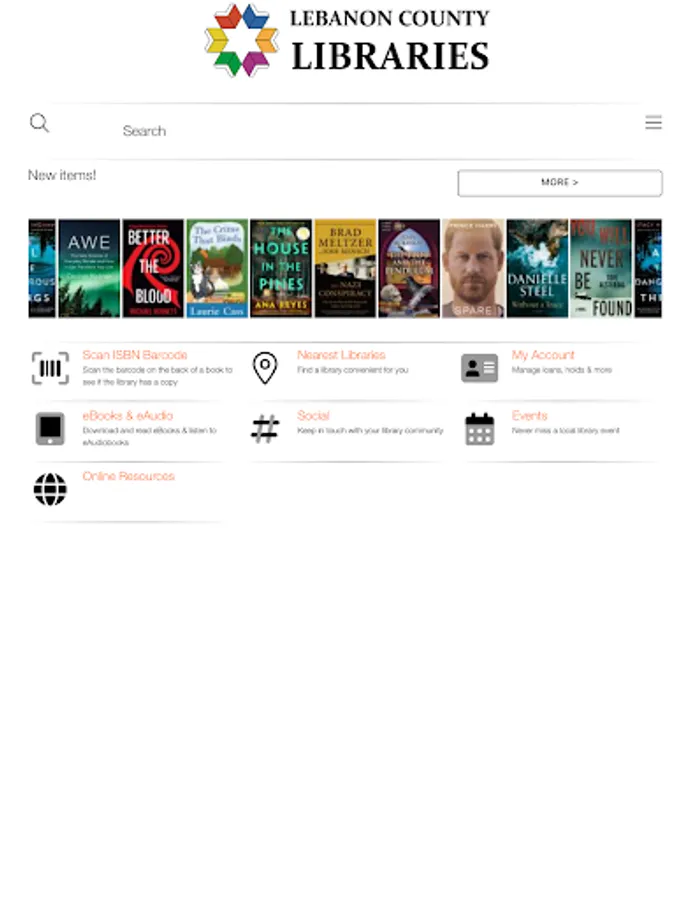 Access Lebanon County Libraries from your Android phone or tablet. Manage your account, search the catalogue, renew and reserve books.