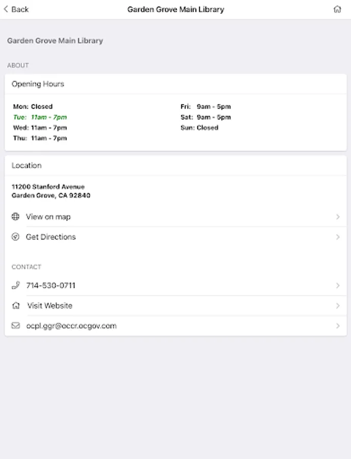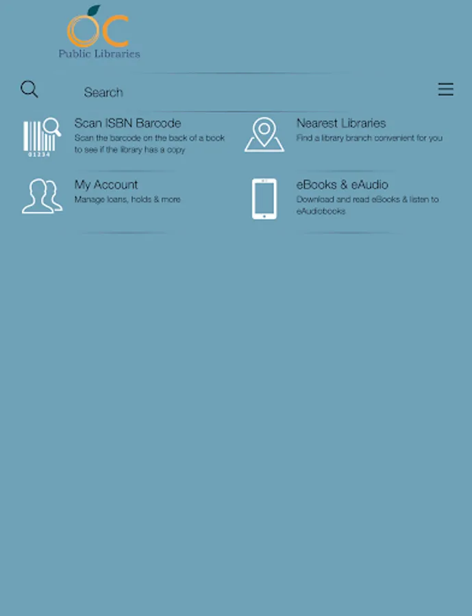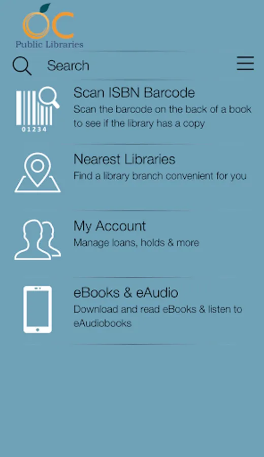 Connect with OC Public Libraries on the go! Browse our collection and use our digital resources. Search our catalog of materials including books, movies, music, eBooks, and eAudiobooks. Manage your account, place holds, pay fines, renew materials and store your library card. Use your digital library card to borrow materials at our self-check machines and utilize wireless printing. Find library hours and directions. Contact us with your questions. Discover upcoming events and programs at a library near you, receive library announcements, and connect with us on social media.